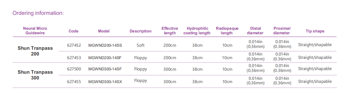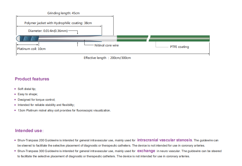 ● 10cm Platinum nickel alloy coil provides for fluoroscopic visualization.