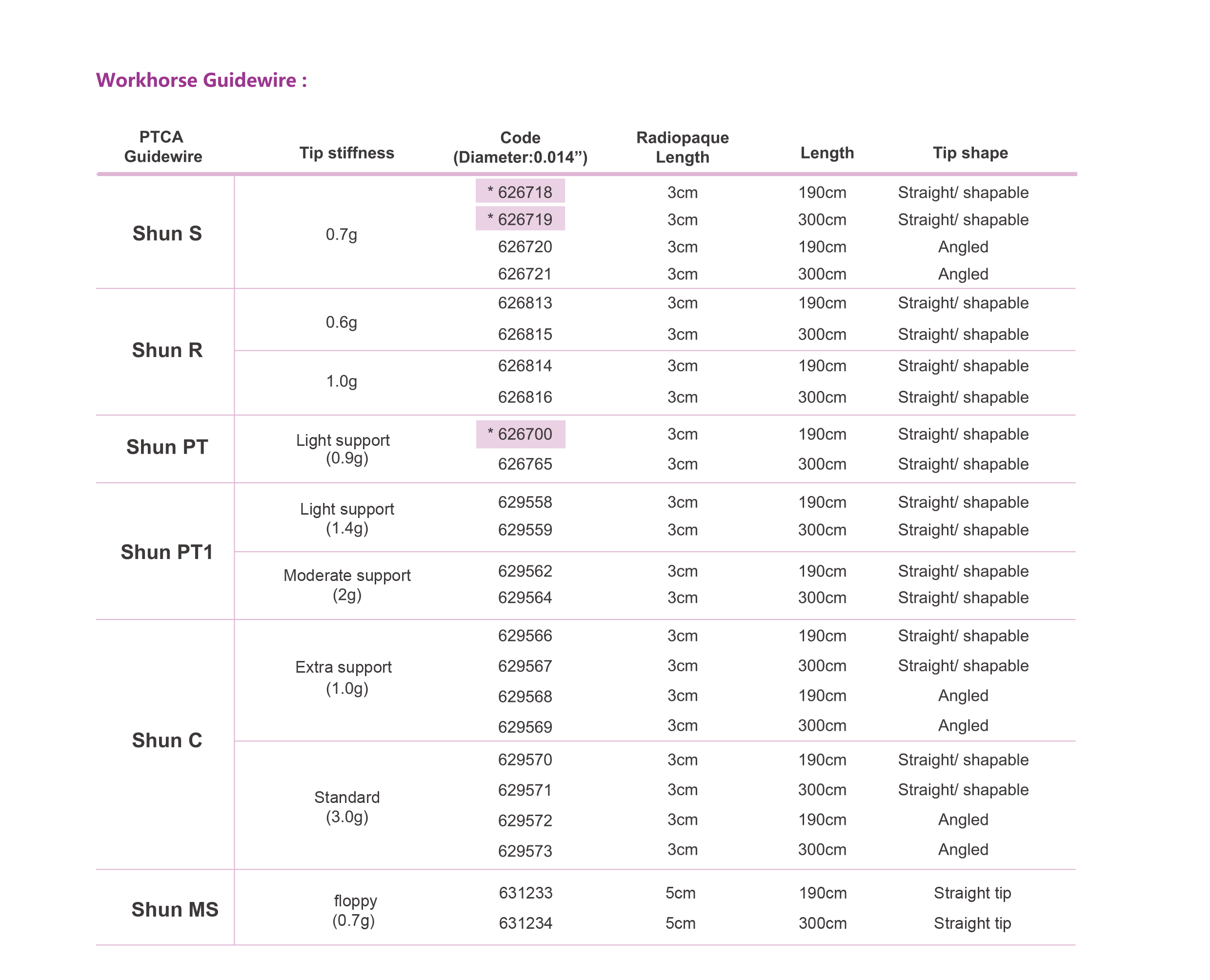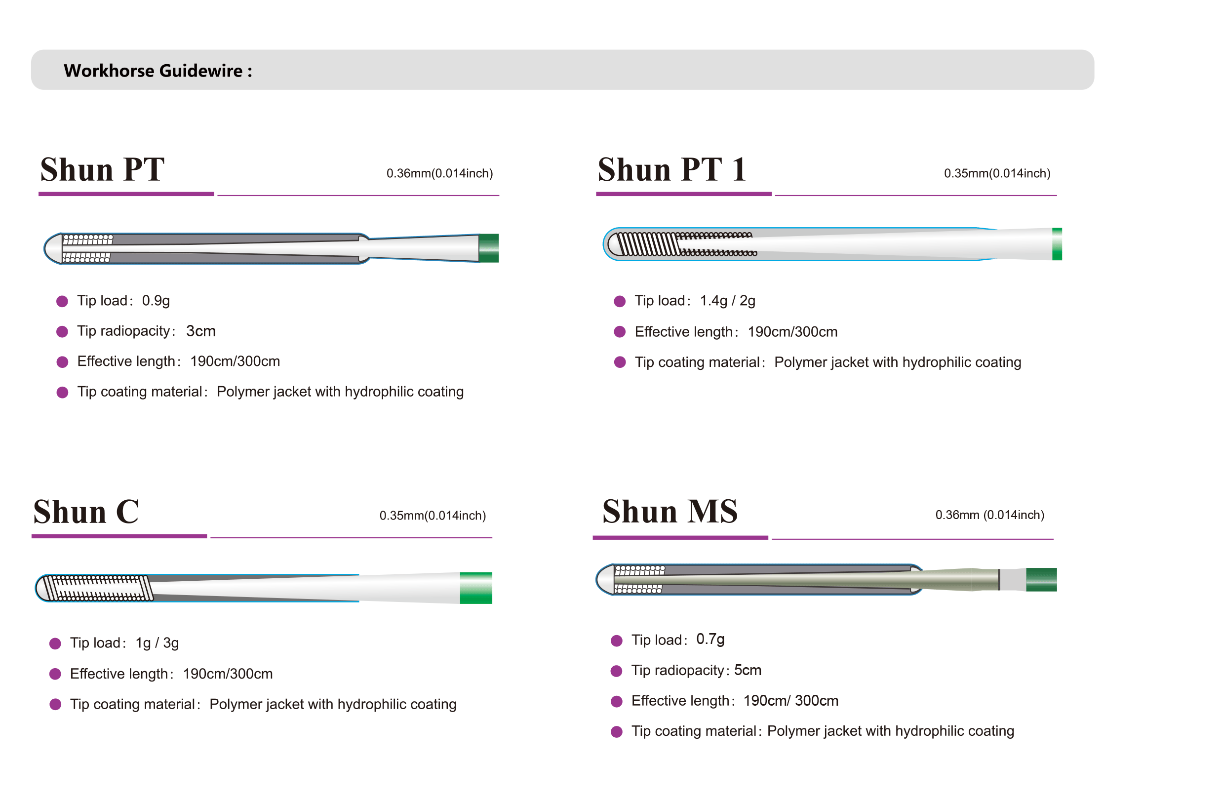 Shunmei PTCA guide wires are engineered with advanced features to reach better performance in coronary intervention procedures: