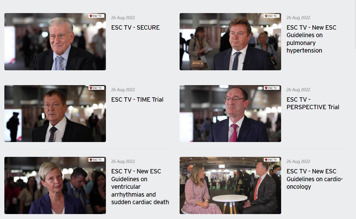 ESC是每年一次的大会,轮流在欧洲各国的大城市举办, 都是大家展现'心脏病学的魔力'的绝佳机会。线下会议和来自全世界各国医生线上各种学术会议的结合,大会的主题有:心血管系统的可视化技术、精细诊断和高度个性化的治疗手段、丰富多彩的临床案列分享、心血管疾病的前沿科技的研究分享等等。